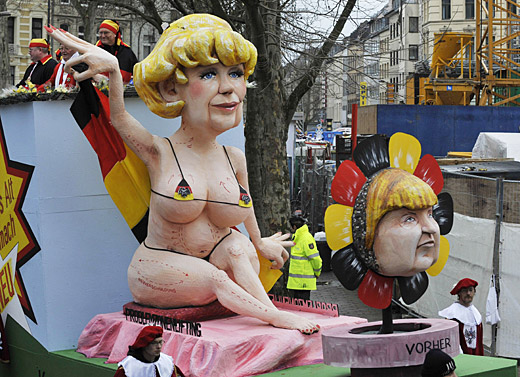 2月23日,德國民間最大的狂歡節之一科隆的“玫瑰星期一”游行舉行。該游行在科隆、美因茲及杜塞爾多夫幾個城市最為隆重,并以諷刺政治人物的搞笑充氣玩具聞名。