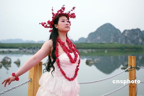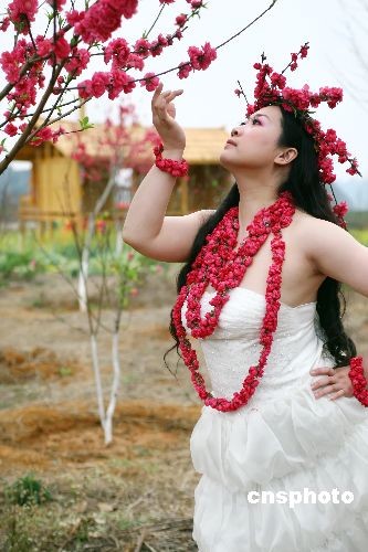 2009年2月,南寧花花大世界首屆桃花節邀請芙蓉姐姐參加演出,芙蓉姐姐化身“桃花仙子”拍攝唯美寫真。中新社發 駱文剛 攝