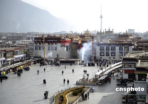 2月24日,中國藏歷年三十,大昭寺廣場一派祥和氣氛,迎接藏歷新年的到來。中新社發 廖攀 攝