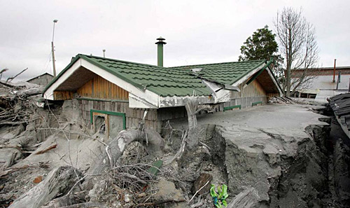 圖:智利火山再度爆發之后周邊城鎮一片狼藉(3)