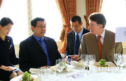 圖:陳德銘與英商業大臣曼德爾森共進午餐