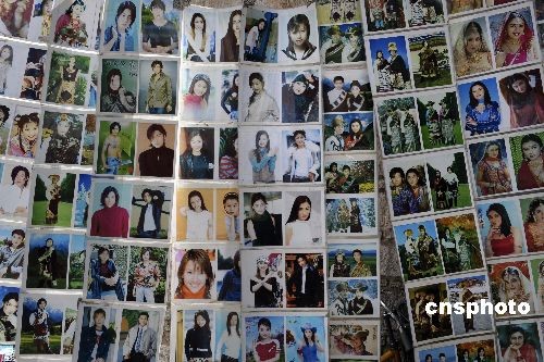 2月28日,拉薩小昭寺路邊的一家照相館外,懸掛著該店制作的偶像照片和藏族民眾在該店拍攝的紀念照片。中新社發 廖攀 攝