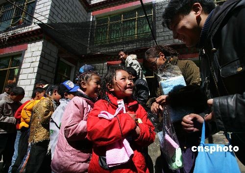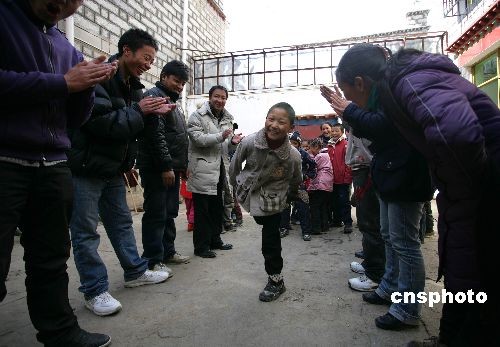 2月28日,藏歷大年初四,拉薩市希望角公益組織十幾名青年志愿者來到位于拉薩城關區的曲珍孤兒院,利用休息周六時間來看望孩子們,給孩子們帶來玩具、食物和文具等,并和孩子們做游戲等。曲珍孤兒院成立于2001年11月,由一個叫尼瑪的藏族人開辦,現有七十多名孩子,經費由尼瑪個人和各種公益組織提供。中新社發 劉震 攝