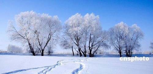 3月3日,受降溫天氣影響,阿勒泰市阿葦灘鎮、切木爾切克鄉一帶出現綿延數公里的霧凇景觀,在雪的襯托下,處處玉樹瓊枝、銀裝素裹、晶瑩剔透,吸引不少過路者駐足觀賞。中新社發 史志強 攝