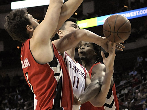 當地時間3月3日晚,中國球員姚明所在的NBA火箭在休斯頓主場以107比97擊敗猛龍,登上西部第三的位置。姚明拿下了20分11個籃板。