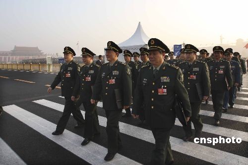 3月5日,十一屆全國人大二次會議在北京人民大會堂開幕。解放軍代表團整齊步入會場。中新社發 盛佳鵬 攝