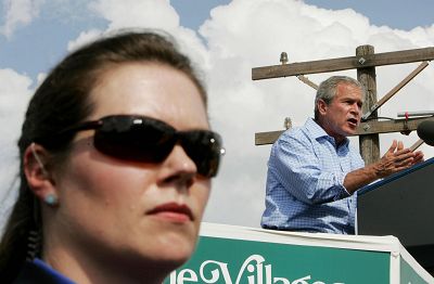 酷勁十足的女保鏢貼身護(hù)衛(wèi)布什:據(jù)日本媒體報(bào)道稱,美國(guó)政府計(jì)劃派600名警衛(wèi)人員隨同布什出訪北京奧運(yùn)會(huì),其中包括數(shù)十位貼身保鏢。正當(dāng)盛年的美國(guó)女特工溫迪·巴斯南承擔(dān)了這項(xiàng)艱巨的任務(wù)。