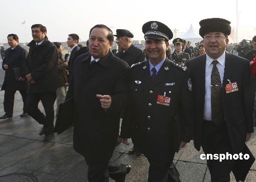 3月5日上午,十一屆全國人大二次會議在北京人民大會堂開幕,來自新疆的全國人大代表、喀什市公安局黨委副書記努爾拉·阿尤甫與其他代表一起步入會場。中新社發(fā) 盛佳鵬 攝