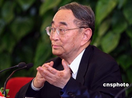 全國政協常委、著名經濟學家厲以寧在3月6日下午舉行的全國政協十一屆二次會議記者會上說,當前樓價居高不下,原因是地價高。他還回答了關于上調資源增值稅的說法和提高勞動收入在國民收入中分配比例等問題。中新社發 宋吉河 攝