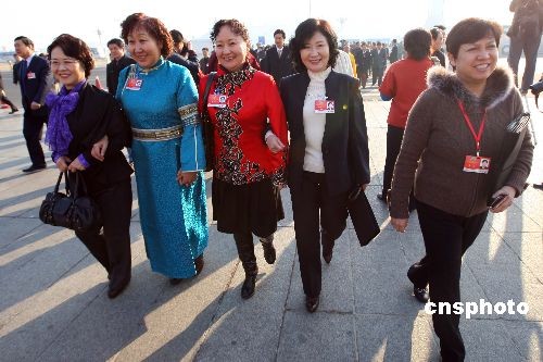 圖:國際婦女節(jié)里女委員微笑入會場