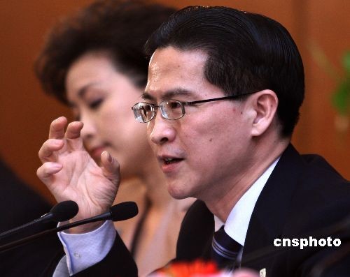 3月8日,全國政協十一屆二次會議記者會在人民大會堂新聞發布廳舉行,主題是“政協委員談上海世博會”。萬季飛、周漢民、成岳沖、楊瀾等四位委員出席并回答記者提問。周漢民回答記者提問時肯定地說,本屆世博會一定會極大地促進我們海峽兩岸的經貿和文化往來。中新社發 宋吉河 攝
