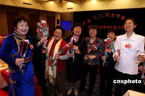 3月8日晚,參加全國政協十一屆二次會議的婦聯界女委員們在駐地賓館共度婦女節。中新社發 傅丹丹 攝