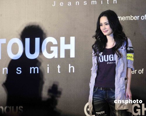 三月十日,“艷照風波”事件女主角之一、“阿嬌”鐘欣桐,終于正式復工。以擔任一品牌牛仔褲亞太地區代言人的身份,并在香港某商場首次公開面對傳媒。中新社發 譚達明 攝