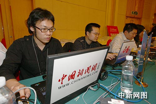 3月12日下午,十一屆全國人大二次會(huì)議新聞中心舉行“文化市場與文化產(chǎn)業(yè)發(fā)展”專題采訪,中新網(wǎng)記者現(xiàn)場工作。中新社發(fā) 杜洋 攝