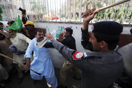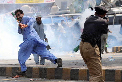 3月15日,巴基斯坦前總理謝里夫的支持者在拉合爾舉行抗議集會時與警察發生沖突。