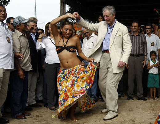 英王儲(chǔ)查爾斯訪巴西 與性感女郎熱扭桑巴