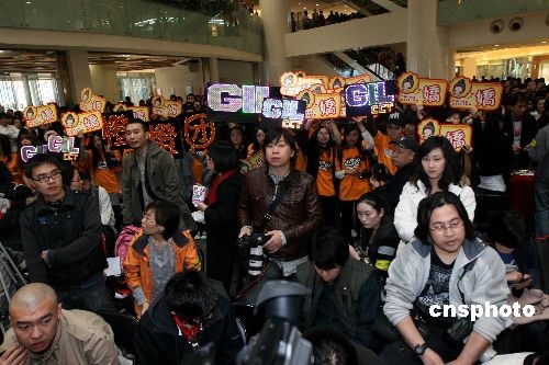 2009年3月21日,香港歌星阿嬌在北京西單大悅城為其代言的牛仔品牌做最后一站巡回宣傳。阿嬌在活動中表示很遺憾沒能到北京看奧運會,但這次接下復出后第一份工作并在北京看到支持的歌迷讓她感受到了生活的快樂和堅強的意義。中新社發 袁方 攝