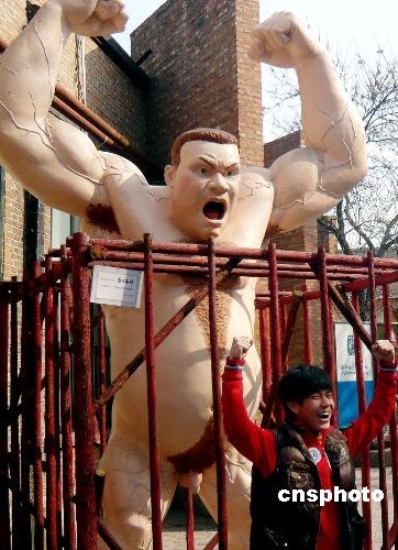 圖:北京798藝術(shù)區(qū)雕塑作品吸引游客