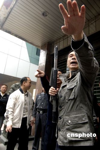 圖為特警繳獲劫持疑犯所使用的兇器。