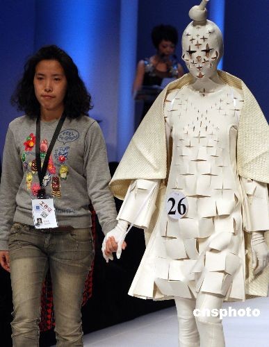 圖為模特展示具有環保理念的中國國際青年設計師時裝作品。中新社發 錢興強 攝