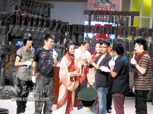 19日,在湖北出土的六件重量級文物——越王勾踐劍、曾侯乙編鐘以及雙耳金杯等,一齊亮相湖南衛(wèi)視的熱播欄目《天天向上》的錄播現(xiàn)場。汪涵、歐弟、田源、錢楓和韓國明星小五,以其一貫的幽默、活潑的主持風格,把沉重靜謐的文物活靈活現(xiàn)地推介給了電視觀眾。