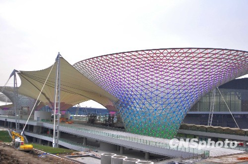 2010年1月22日,作為世博會“一軸四館”永久場館之一的世博軸工程正式竣工,這標志著世博建設邁入新階段。世博軸是由地上二層、地下二層組成的立體交通樞紐,長約1045米,寬約130米,總占地面積約13萬平方米,總建筑面積25.1萬平方米,地下空間建筑面積約19萬平方米,地上建筑面積約6.1萬平方米。世博軸工程是2010年上海世博會的主入口和中央人行立體交通樞紐,是本屆世博會的地標性建筑。世博軸工程的竣工標志著工程建設階段的完成,即將邁入運營準備階段。預計4月15日之前完成運營人員培訓、功能用房和商業裝修。并計劃4月15日-4月底進行試運營。中新社發 沈春琛 攝