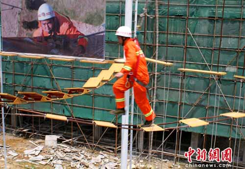 隨著消防部隊承擔(dān)社會救助范圍的不斷擴(kuò)大,滅火救援、搶險救災(zāi)和處置突發(fā)事件的復(fù)雜性及不可確定性因素不斷增加,加強(qiáng)心理拓展訓(xùn)練,成為消防部隊一項緊迫而又新型的課題。 (唐海波 攝)
