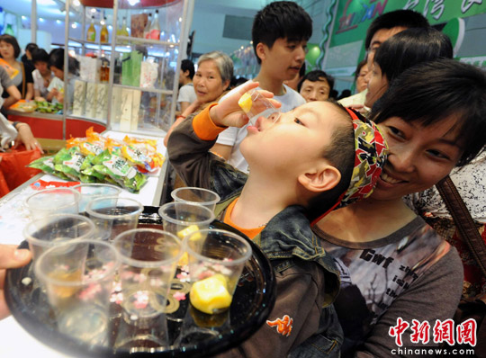 5月22日,絡(luò)繹不絕的福建福州市民逢周六假日,蜂擁而至正在福州海峽國際會(huì)展中心舉行的第十二屆“海交會(huì)”臺(tái)灣館“臺(tái)灣特色食品展區(qū)” 爭(zhēng)先品嘗、購買臺(tái)灣特色美食。當(dāng)日,為期5天的第十二屆海峽兩岸經(jīng)貿(mào)交易會(huì)圓滿落幕。
