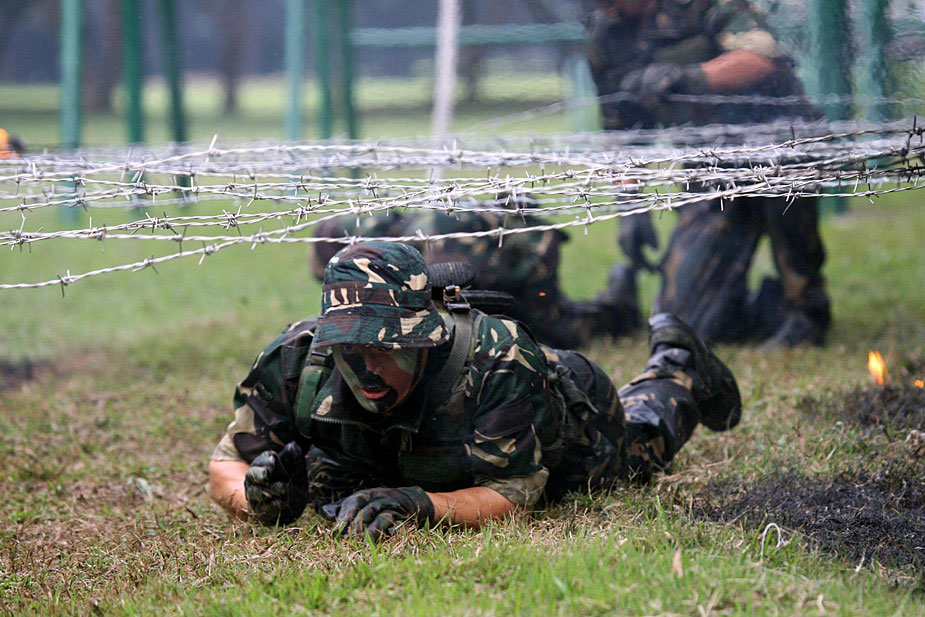 本網(wǎng)記者近日在中國(guó)人民解放軍駐香港部隊(duì)石崗營(yíng)區(qū)訓(xùn)練場(chǎng),觀看了駐港部隊(duì)偵察兵實(shí)彈突擊演練。身穿迷彩服、面涂油彩的戰(zhàn)士們冒著“槍林彈雨”,背負(fù)槍械攻克障礙,其間穿越火障、跨越滑橋、潛灘暗渡,更肩扛一百公斤的圓木進(jìn)行二百米極限沖刺。這些障礙項(xiàng)目是對(duì)戰(zhàn)士意志、體力與心理的多重磨練,連續(xù)通過(guò)二十一個(gè)項(xiàng)目,更是挑戰(zhàn)體能的極限。鄭祚聲 攝