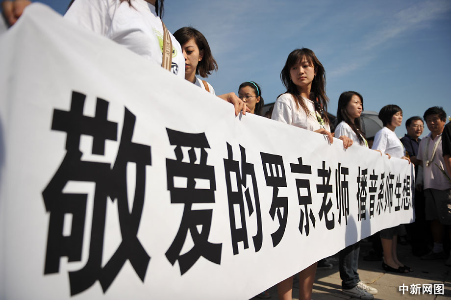 中國傳媒大學播音系學生送別師兄羅京。中新網記者 金碩 攝