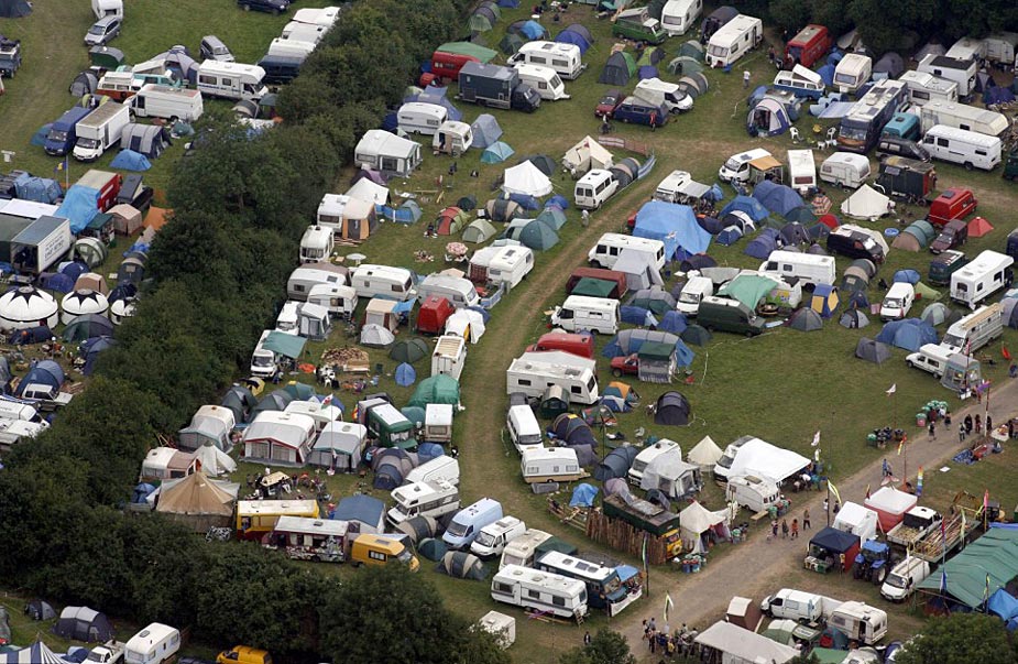 2009年格拉斯頓伯里音樂節在英國薩默塞特舉行,前來參加活動的14萬樂迷在宿營地搭起密密麻麻的帳篷。格拉斯頓伯里音樂節是世界上規模最大的戶外音樂節之一。