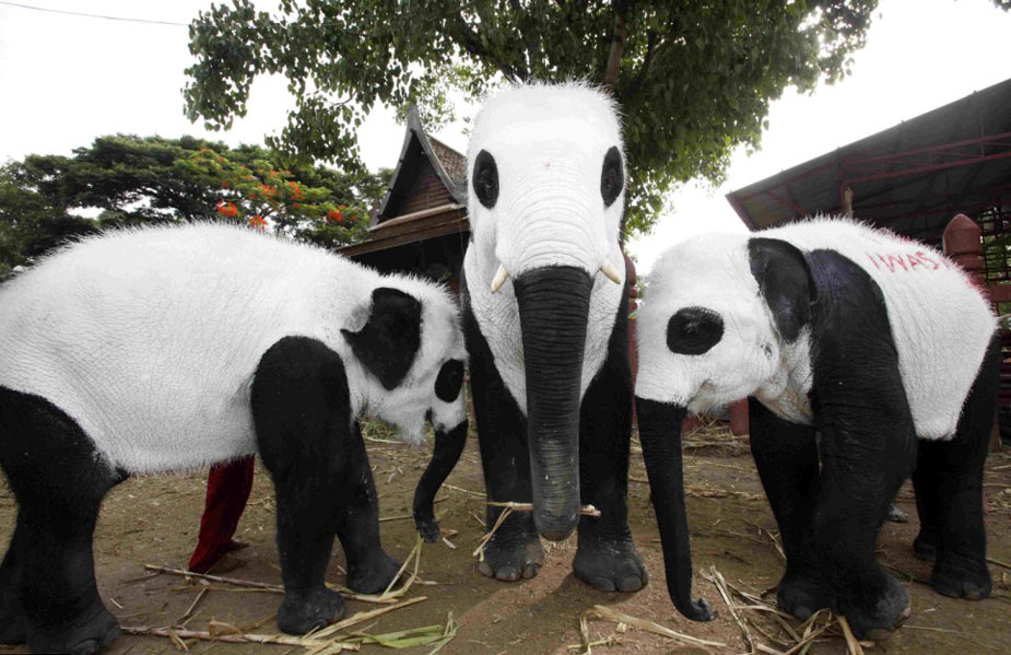 據(jù)英國媒體報(bào)道,近日,泰國因一只剛出生的熊貓陷入熱潮,泰國還準(zhǔn)備向公眾征集熊貓幼崽的名字。幾只大象也“妝扮”成熊貓的模樣,借此吸引人們的關(guān)注。