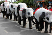 據英國媒體報道,近日,泰國因一只剛出生的熊貓陷入熱潮,泰國還準備向公眾征集熊貓幼崽的名字。幾只大象也“妝扮”成熊貓的模樣,借此吸引人們的關注。
