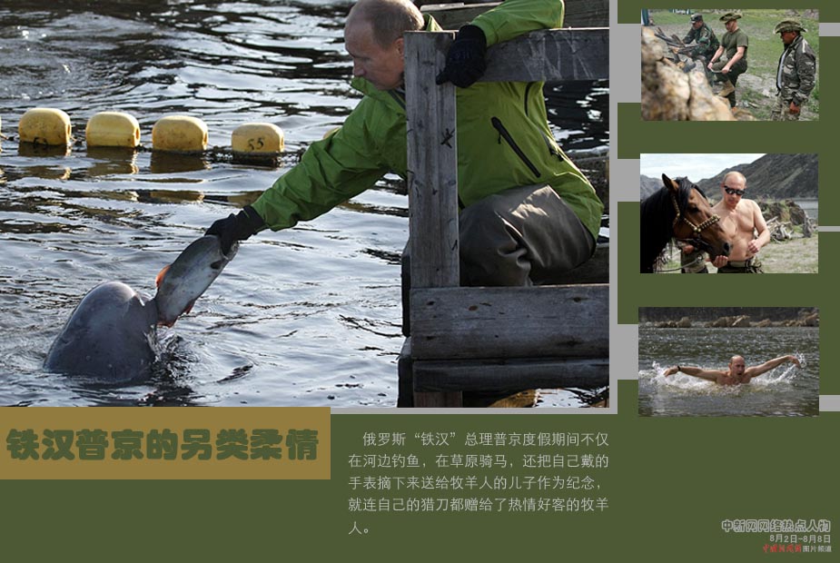 中新網本周熱點人物之普京——這兩天俄羅斯總理普京動作頻頻,再度吸引世界關注的目光:7月31日,普京“戲”鯨展現溫情一面;8月1日,普京乘微型潛艇至世界最深淡水湖貝加爾湖水面下大約1400米處,探查新能源“可燃冰”;1日,普京還在訪問伊爾庫茨克地區的“塔爾茨建筑和民族博物館”時體驗打鐵......