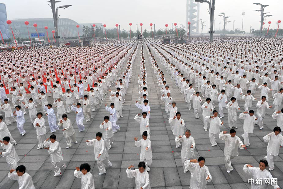 8月8日,全國(guó)首個(gè)“全民健身日”北京主會(huì)場(chǎng)啟動(dòng)儀式上,三萬多群眾進(jìn)行太極拳展示活動(dòng),在世界吉尼斯總部認(rèn)證官員的見證下成功打破世界紀(jì)錄。中新網(wǎng)記者 金碩 攝