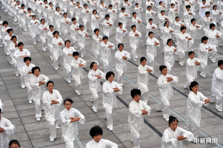 8月8日,全國首個“全民健身日”北京主會場啟動儀式上,三萬多群眾進行太極拳展示活動,在世界吉尼斯總部認證官員的見證下成功打破世界紀錄。中新網記者 金碩 攝