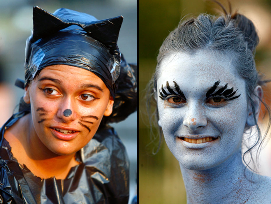 圖為參加狂歡節的人們在臉上進行“涂鴉”。