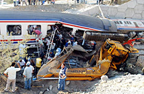火車與工程車相撞
