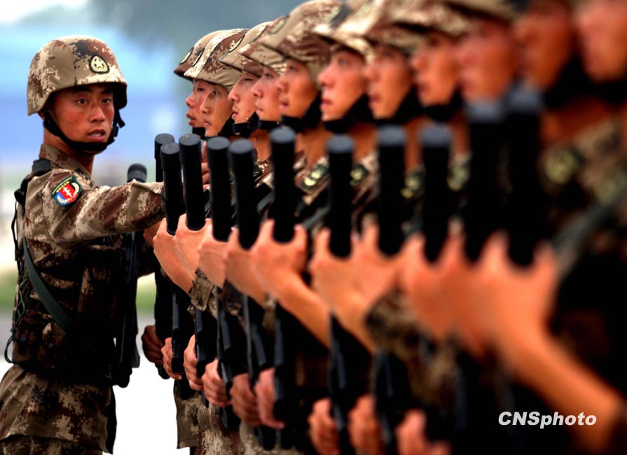 9月3日,北京郊區(qū)閱兵村的官兵正在加緊訓(xùn)練。中新社發(fā) 宋吉河 攝