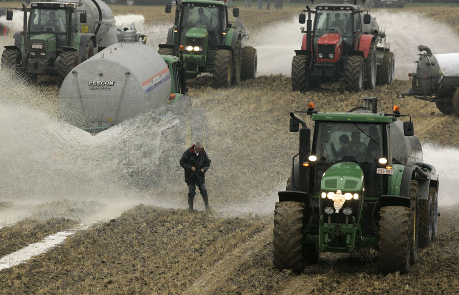16日,比利時奶農向地里傾倒了3百萬升鮮牛奶做“農肥”,抗議奶價暴跌。奶農們認為,提高牛奶生產配額造成歐盟市場上奶制品供大于求,進而引發價格暴跌。來源:中國新聞網
