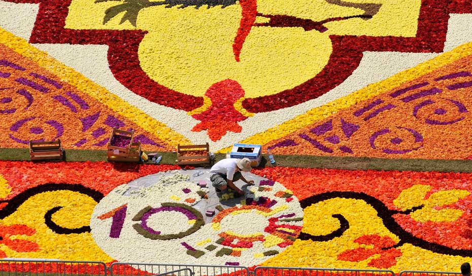 據悉,原本計劃全部使用以色列的鮮花,但由于當地的鮮花產量不足,只能從布魯塞爾進口,這批鮮花每朵花的直徑都在20厘米左右。百名志愿者們費時7小時精心鋪成了這張花毯,這張鮮花地毯將展示三天,隨后將被生態埋葬。