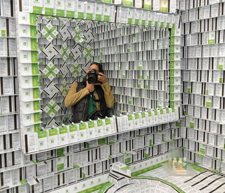 設計師用20多萬張房門卡搭成假日酒店