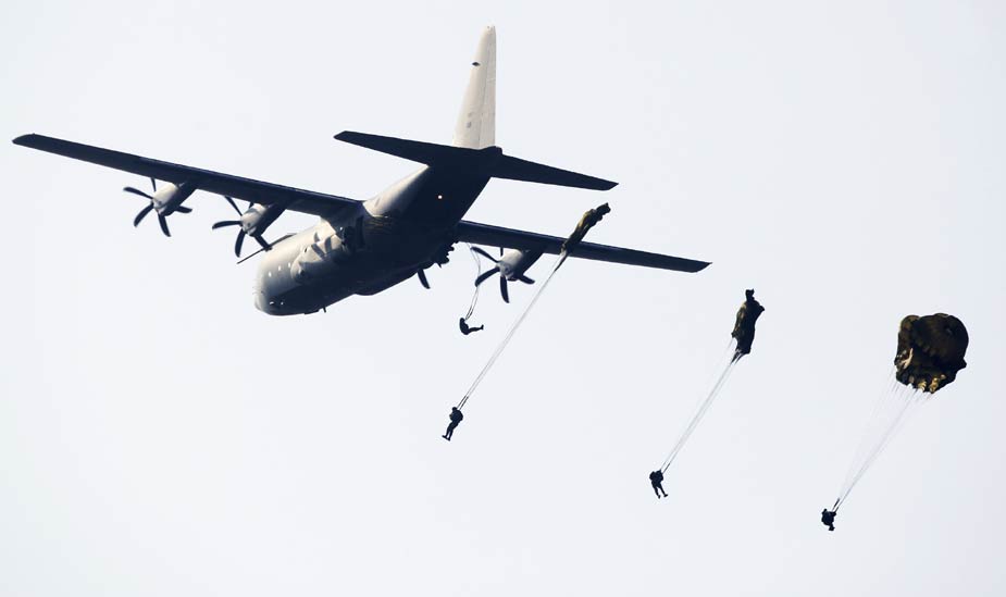 9月19日,英國空降兵在荷蘭埃德附近進行傘降表演,紀念二戰期間盟軍最大規模的空降作戰——“市場花園”行動65周年。圖片來源:中國新聞網