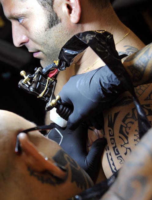 法國巴黎9月20日舉行“紋身藝術節”,吸引了成百上千紋身藝術大師到場獻藝。圖片來源:中國新聞網