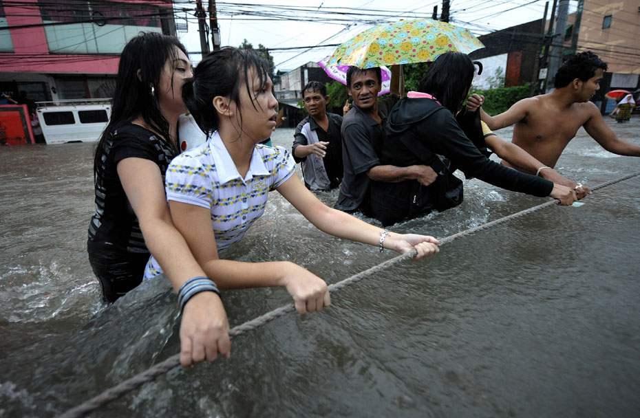 熱帶風暴“凱薩娜”26日吹襲菲律賓北部呂宋島,首都大馬尼拉地區出現逾42年來最嚴重水災,幾乎變成澤國。圖片來源:中國新聞網