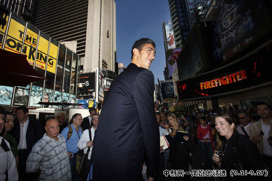 9月21日,身高2.465米的土耳其人柯森在美國紐約拿到了“世界第一高人”的吉尼斯世界紀錄證書。圖片來源:中國新聞網