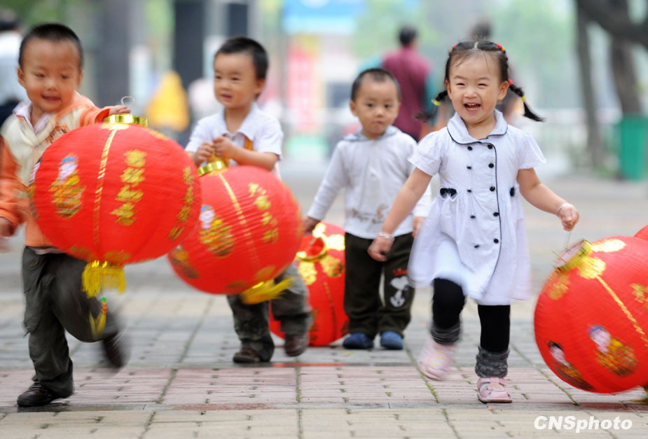 9月27日,合肥市綠苑社區兒童正手提大紅燈籠奔跑歡呼。當日,合肥市大通路街道綠苑社區開展“掛燈籠迎國慶”活動,社區群眾用燈籠將社區里裝扮一新,喜迎國慶節到來。 中新社發 解琛 攝