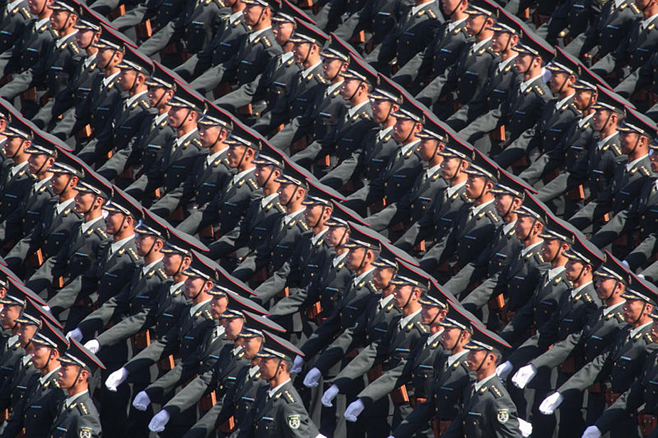 2009年10月1日,北京,首都各界慶祝中華人民共和國成立60周年大會在北京舉行。大會結束后舉行了盛大的閱兵式。這是接受檢閱的徒步方隊。(史家民/CFP)
