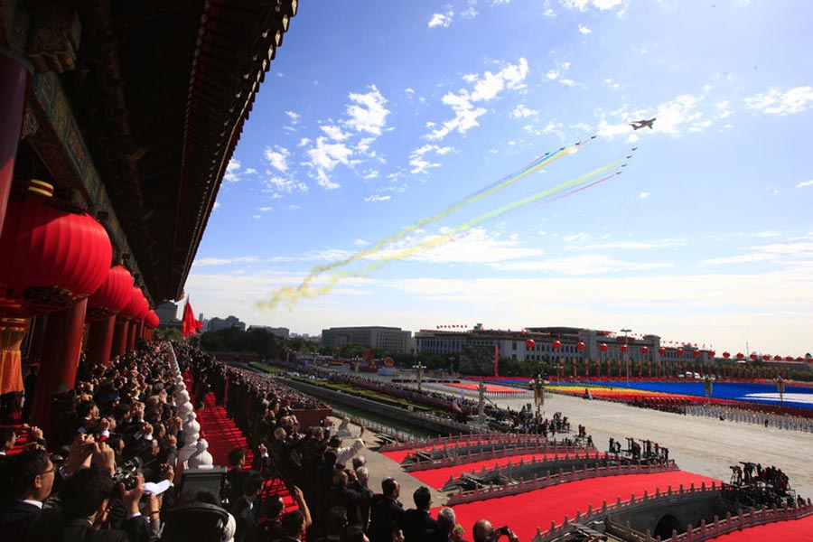 2009年10月1日,首都各界慶祝中華人民共和國成立60周年大會在北京舉行。空中方隊在北京上空駛過。