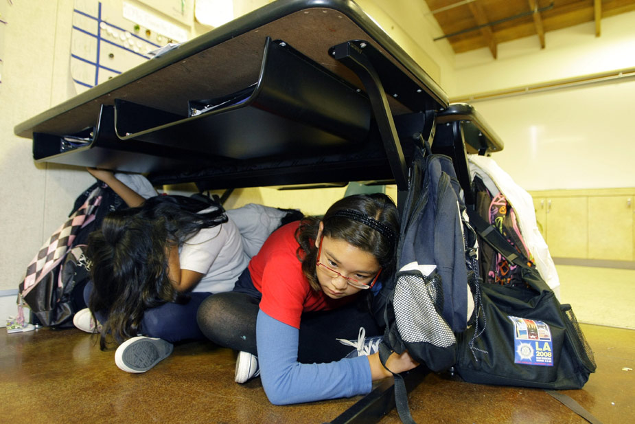 周四(10月15日),超過一千萬加州居民參加了美國有史以來最大地震演習,以紀念舊金山大地震二十周年。圖片來源:中國新聞網